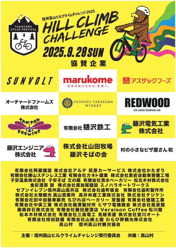 実行委員会構成団体:高山村、高山村商工会、信州高山村観光協会、高山村体育協会、山田温泉スキークラブ、高山村サイクリングクラブ